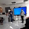 Bild links: Arbeitsgruppe Philip, Estrella und Klaus beim Üben neu erlernter Techniken Bild rechts: Die Referentin Cindy und der Referent Martin des Workshops